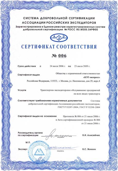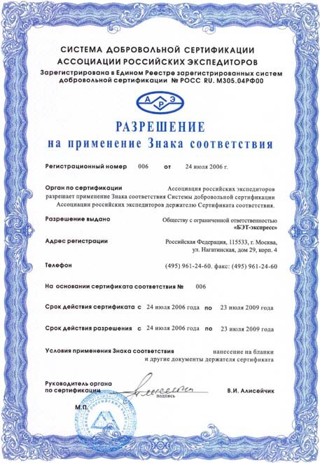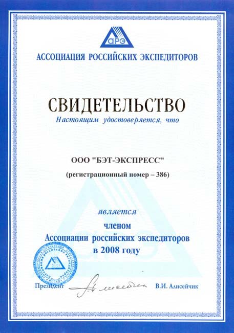 - член Ассоциации Российских Экспедиторов с 2006 года